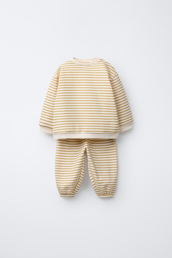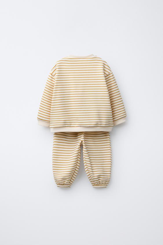 ZARA КОМПЛЕКТ ИЗ ТОЛСТОВКИ И БРЮК-ДЖОГГЕРОВ В ПОЛОСКУ, ОХРА