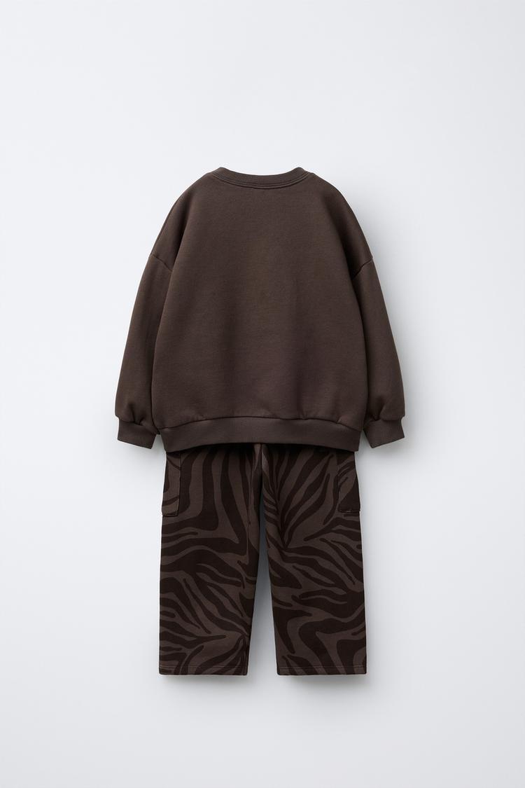 ZARA КОМПЛЕКТ ИЗ ТОЛСТОВКИ И БРЮК С ПРИНТОМ, ОТТЕНКИ КОРИЧНЕВОГО