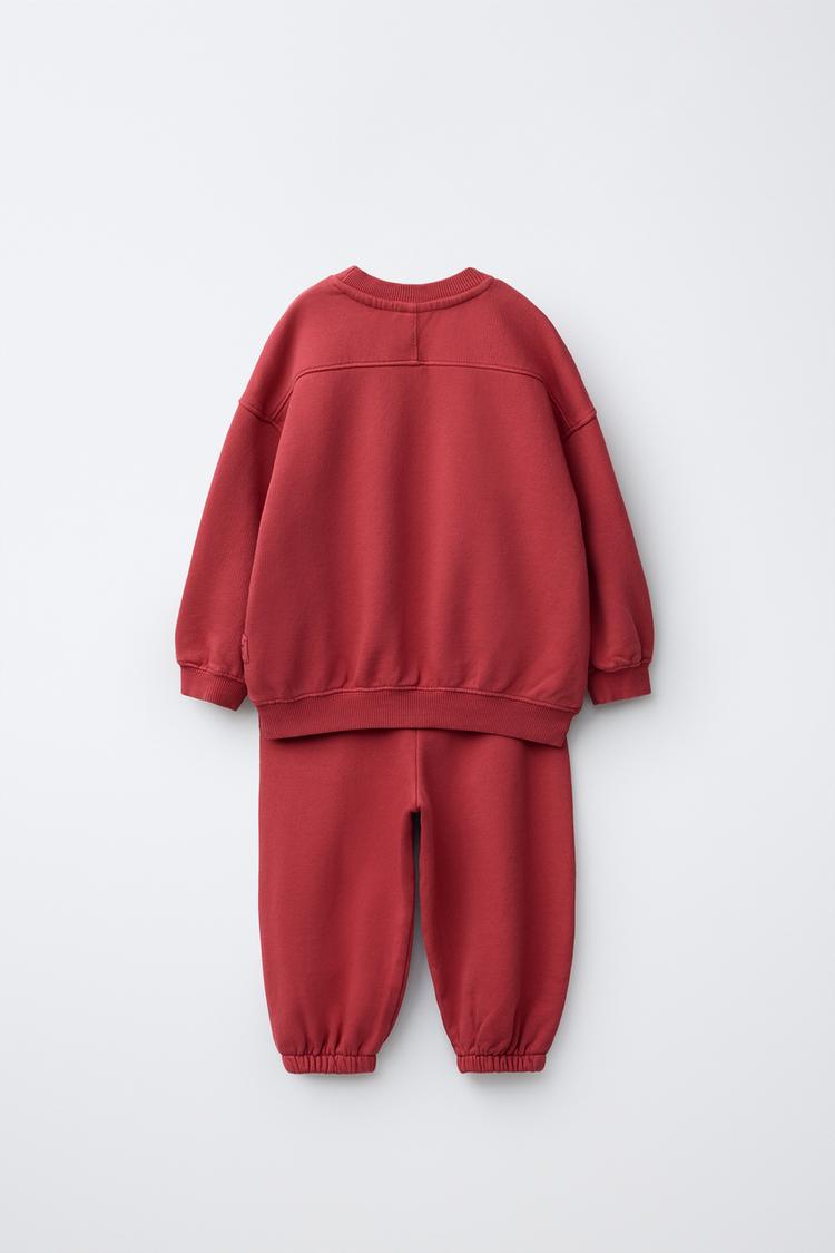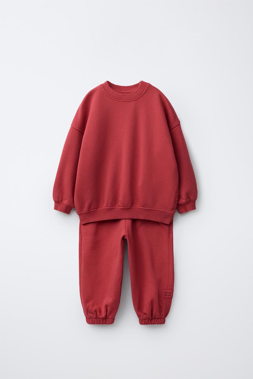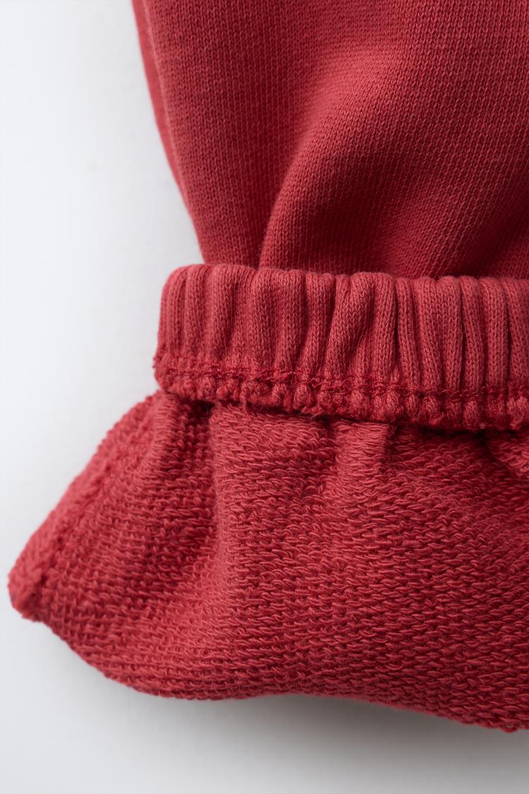 ZARA КОМПЛЕКТ ИЗ ТОЛСТОВКИ И БРЮК WIDE LEG С НАШИВКОЙ, КРАСНЫЙ