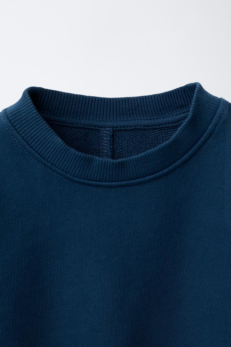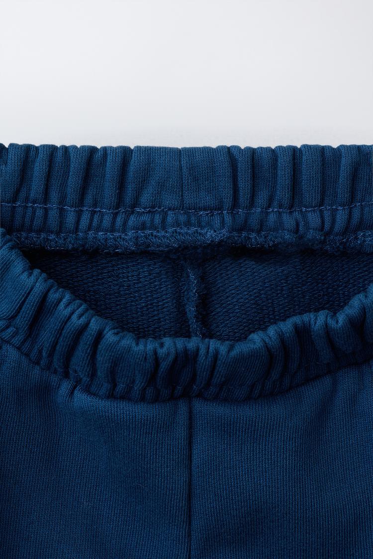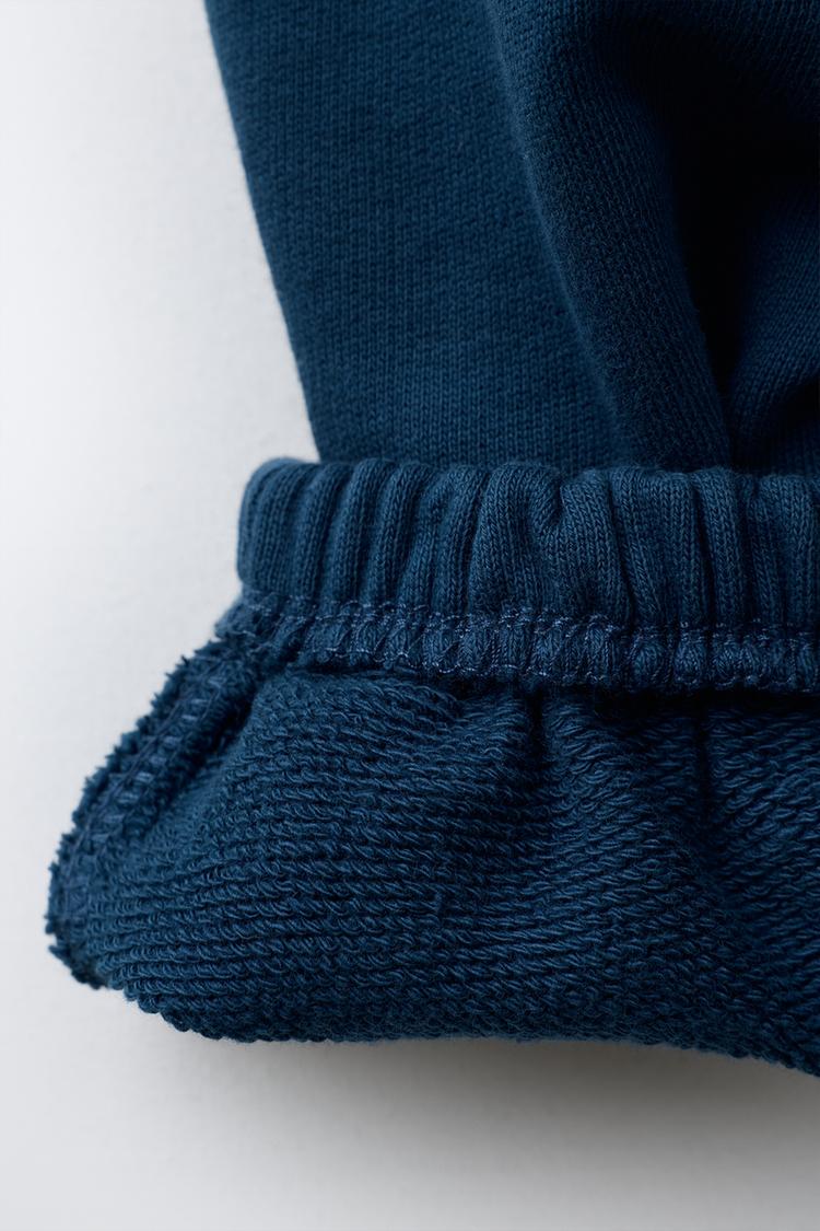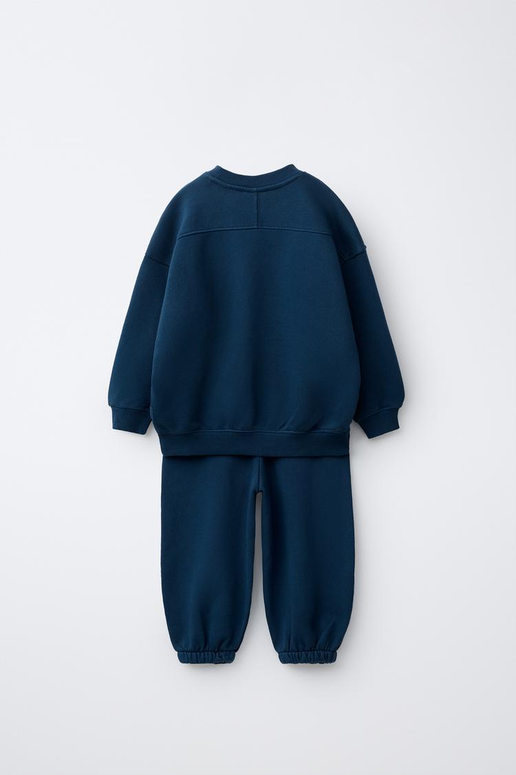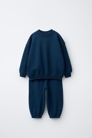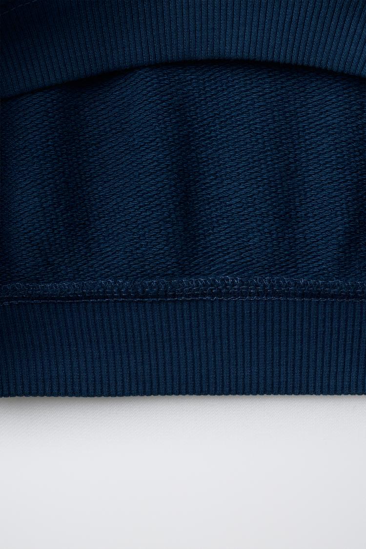 ZARA КОМПЛЕКТ ИЗ ТОЛСТОВКИ И БРЮК WIDE LEG С НАШИВКОЙ, СИНИЙ
