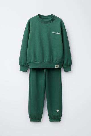 ZARA КОМПЛЕКТ ИЗ ТОЛСТОВКИ И ДЖОГГЕРОВ С ТЕКСТОВОЙ ВЫШИВКОЙ, ЗЕЛЕНЫЙ