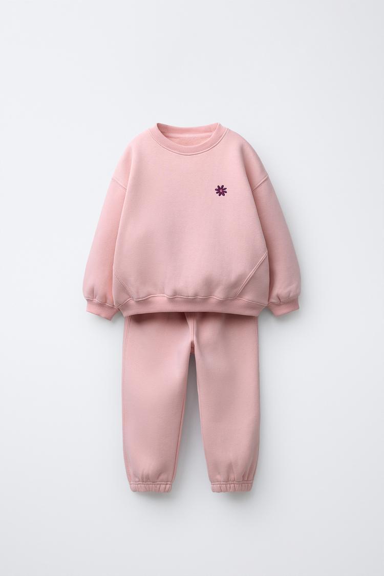 ZARA КОМПЛЕКТ ИЗ ТОЛСТОВКИ И ДЖОГГЕРОВ С ВЫШИВКОЙ, РОЗОВЫЙ