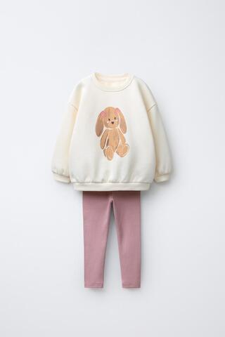 ZARA КОМПЛЕКТ ИЗ ТОЛСТОВКИ И ЛЕГИНСОВ, ЭКРЮ