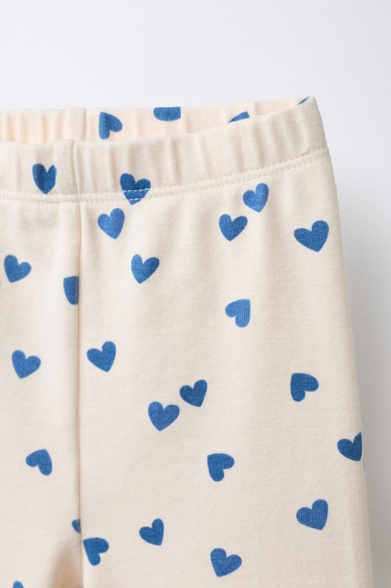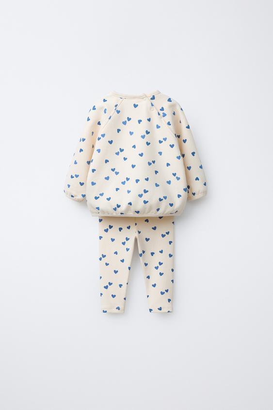 ZARA КОМПЛЕКТ ИЗ ТОЛСТОВКИ И ЛЕГИНСОВ С ВЫШИТЫМИ СЕРДЦАМИ, ЭКРЮ