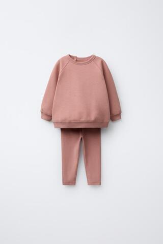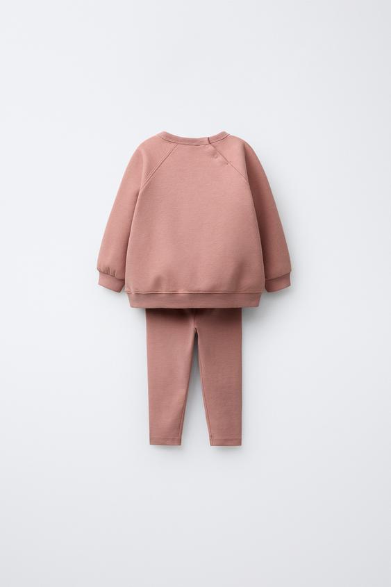 ZARA КОМПЛЕКТ ИЗ ТОЛСТОВКИ И ОДНОТОННЫХ ЛЕГИНСОВ, ЦВЕТ РОЗОВОГО МЕЛ