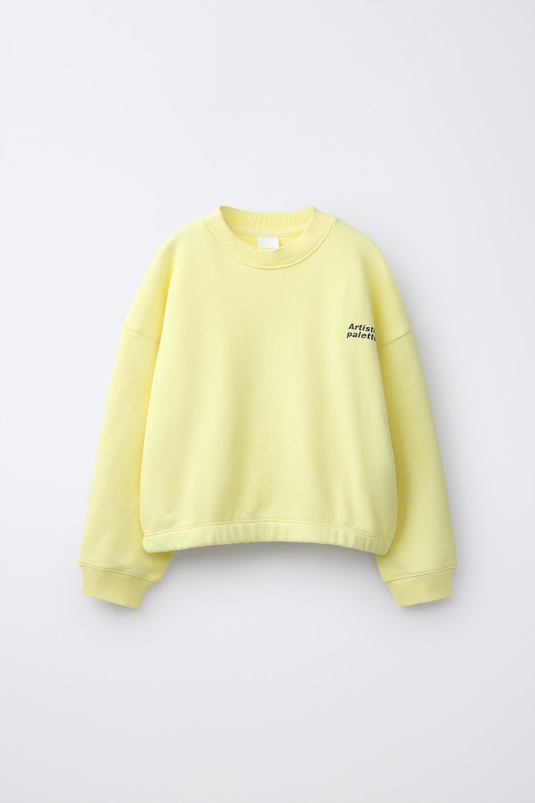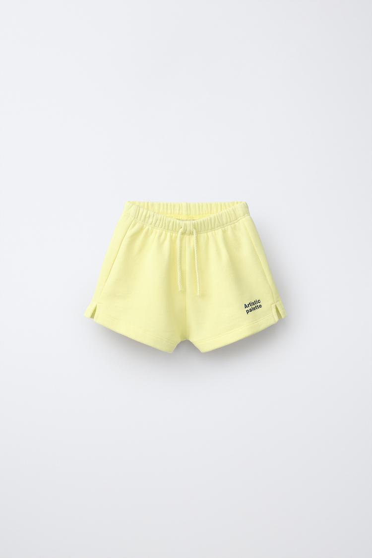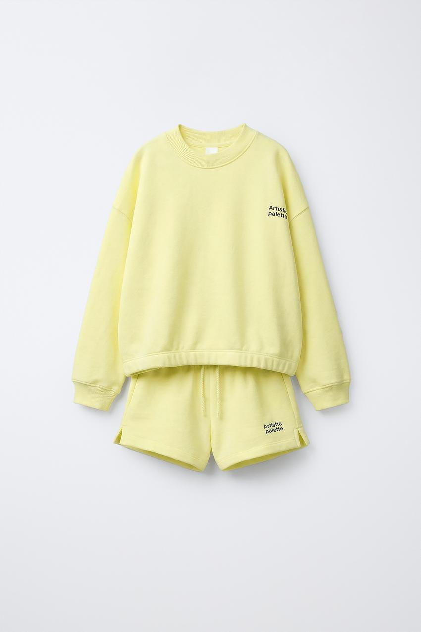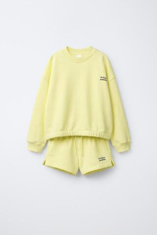 ZARA КОМПЛЕКТ ИЗ ТОЛСТОВКИ И ШОРТОВ С НАДПИСЬЮ, ЖЕЛТЫЙ