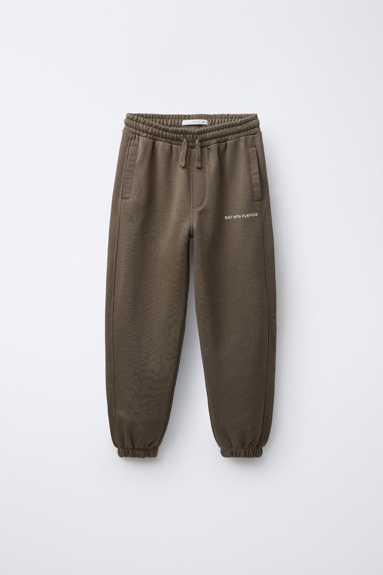 ZARA КОМПЛЕКТ ИЗ ТОЛСТОВКИ С КАПЮШОНОМ И БРЮК-ДЖОГГЕРОВ С НАШИВКАМИ, КОРИЧНЕВЫЙ