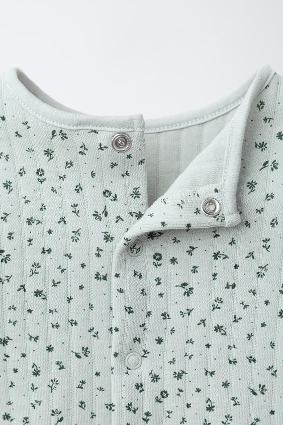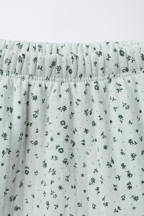 ZARA КОМПЛЕКТ ИЗ ЖАКЕТА, ФУТБОЛКИ 2 В 1 И БРЮК С ЦВЕТОЧНЫМ ПРИНТОМ, ЗЕЛЕНОВАТЫЙ