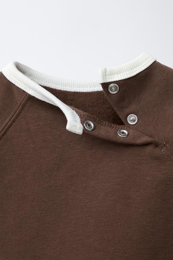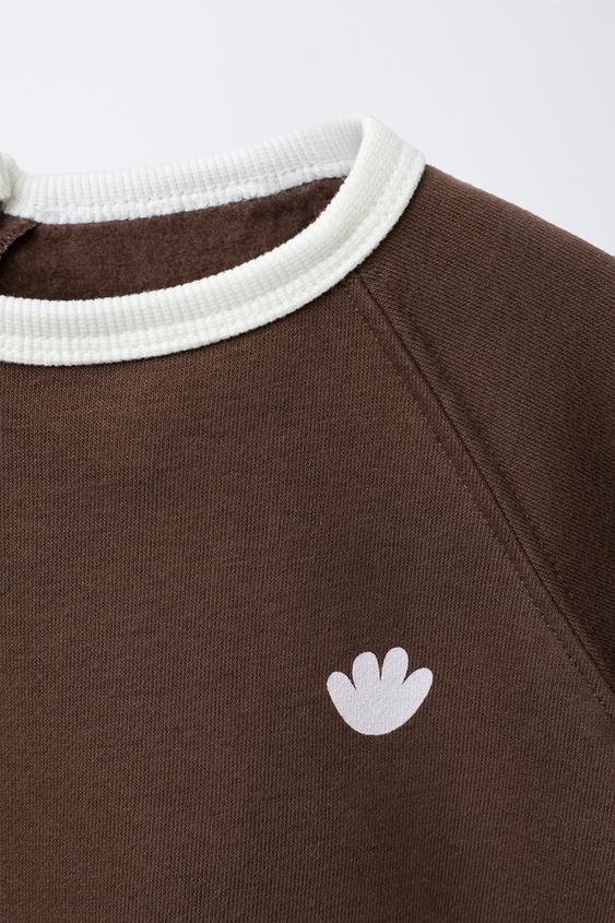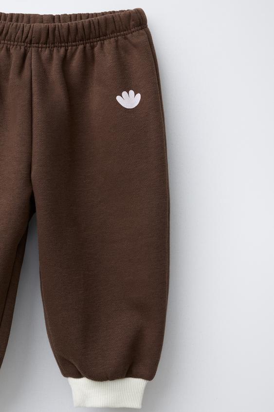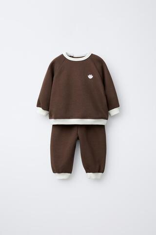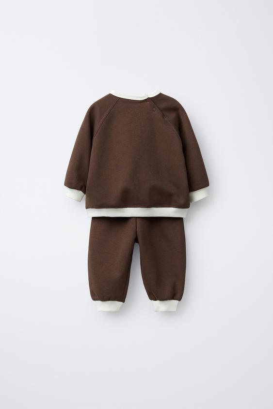 ZARA КОМПЛЕКТ: ТОЛСТОВКА И БРЮКИ С КОНТРАСТНЫМИ ДЕТАЛЯМИ, КОРИЧНЕВЫЙ