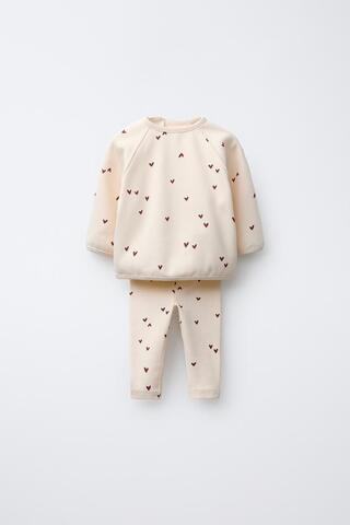 ZARA КОМПЛЕКТ: ТОЛСТОВКА И ЛЕГГИНСЫ С СЕРДЕЧКАМИ, ЭКРЮ