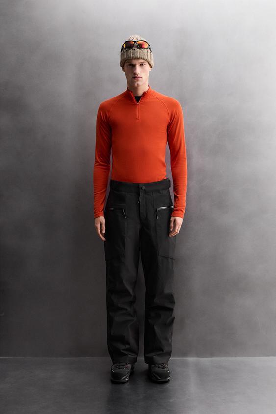 ZARA КОМПРЕССИОННАЯ ФУТБОЛКА ДЛЯ КАТАНИЯ НА ЛЫЖАХ С ВОРОТНИКОМ НА МОЛНИИ, НАСЫЩЕННЫЙ КРАСНЫЙ