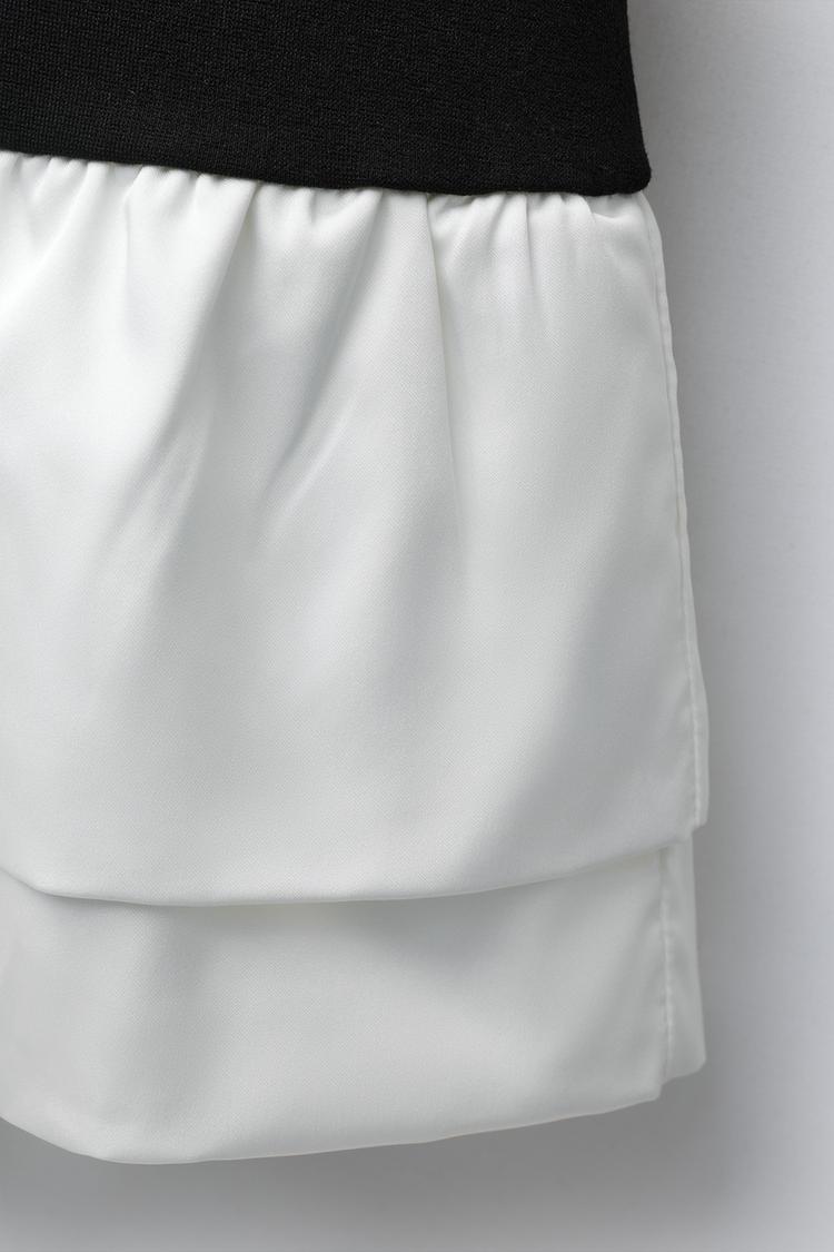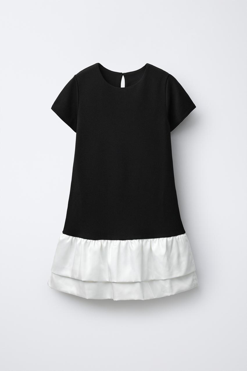 ZARA КОНТРАСТНОЕ ПЛАТЬЕ С ОБОРКАМИ, ЧЕРНЫЙ