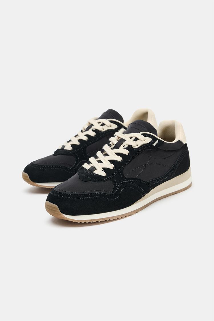 ZARA КОНТРАСТНЫЕ БЕГОВЫЕ КРОССОВКИ, ЧЕРНЫЙ