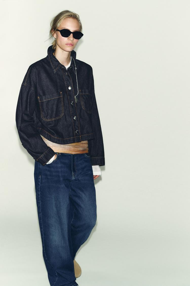 ZARA КОРОТКАЯ ДЖИНСОВАЯ РУБАШКА Z1975, СИНИЙ