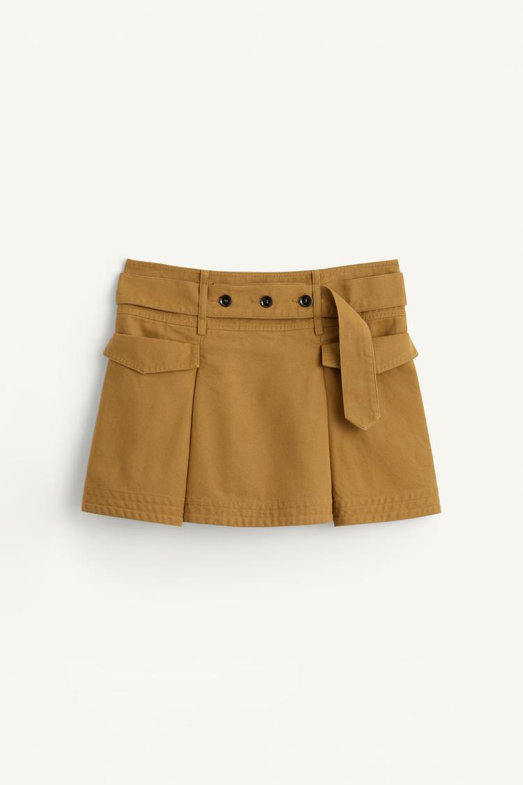 ZARA КОРОТКАЯ ХЛОПКОВАЯ ЮБКА, ОЛИВКОВО-ЗЕЛЕНЫЙ