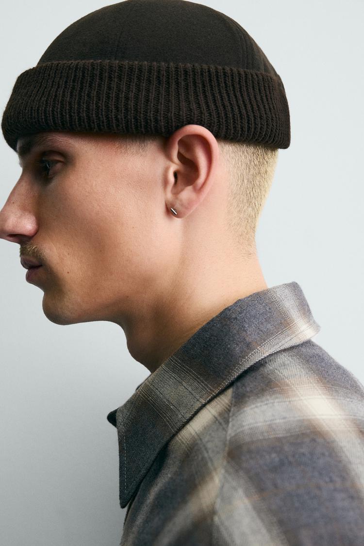 ZARA КОРОТКАЯ КОМБИНИРОВАННАЯ ФЛАНЕЛЕВАЯ ШАПКА, КОРИЧНЕВЫЙ