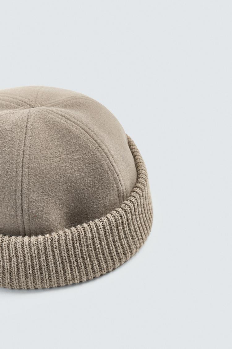 ZARA КОРОТКАЯ КОМБИНИРОВАННАЯ ШАПКА, БЕЖЕВЫЙ