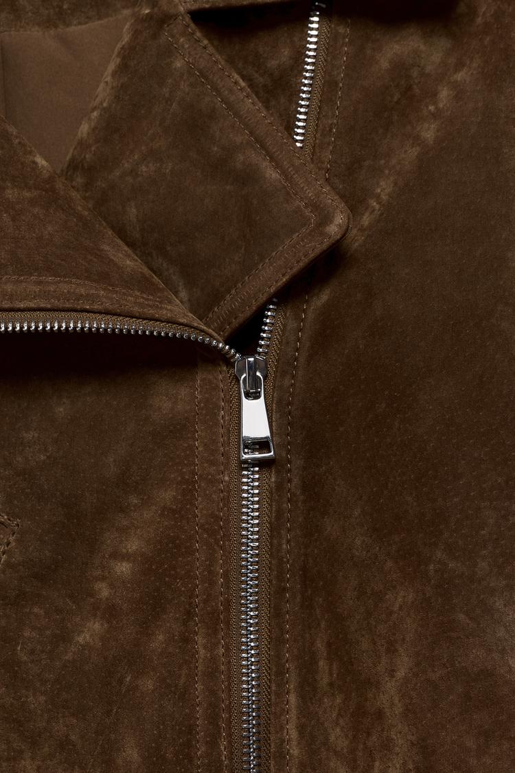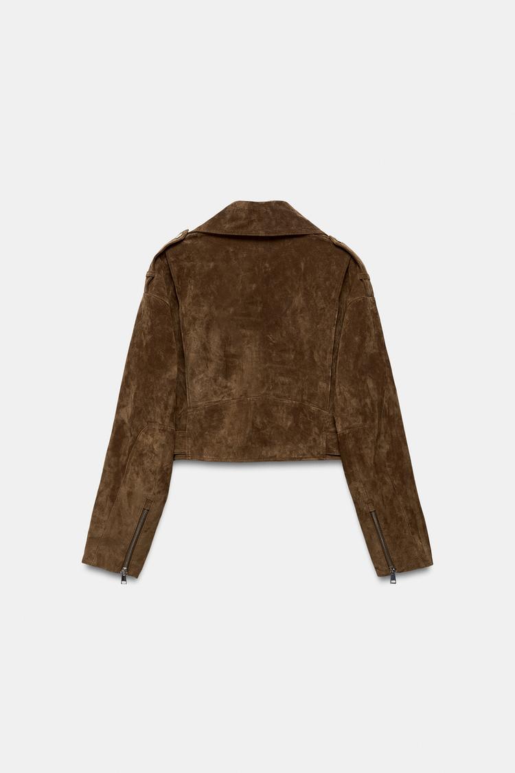ZARA КОРОТКАЯ КУРТКА ИЗ 100% ЗАМШИ С РЕМНЕМ, ТАБАЧНЫЙ