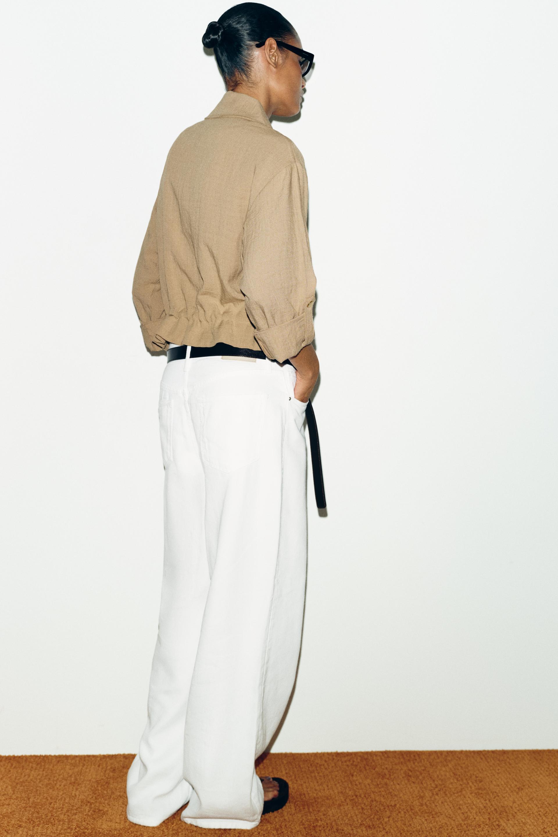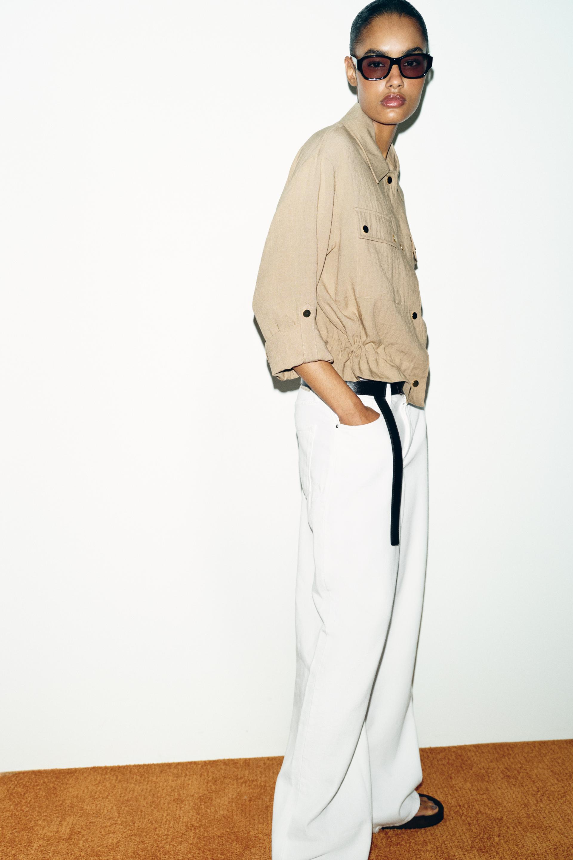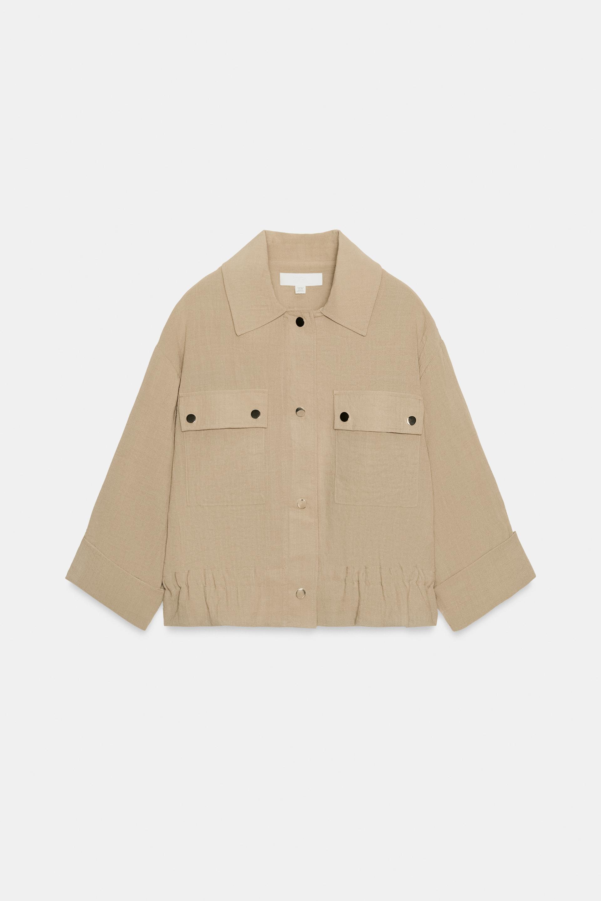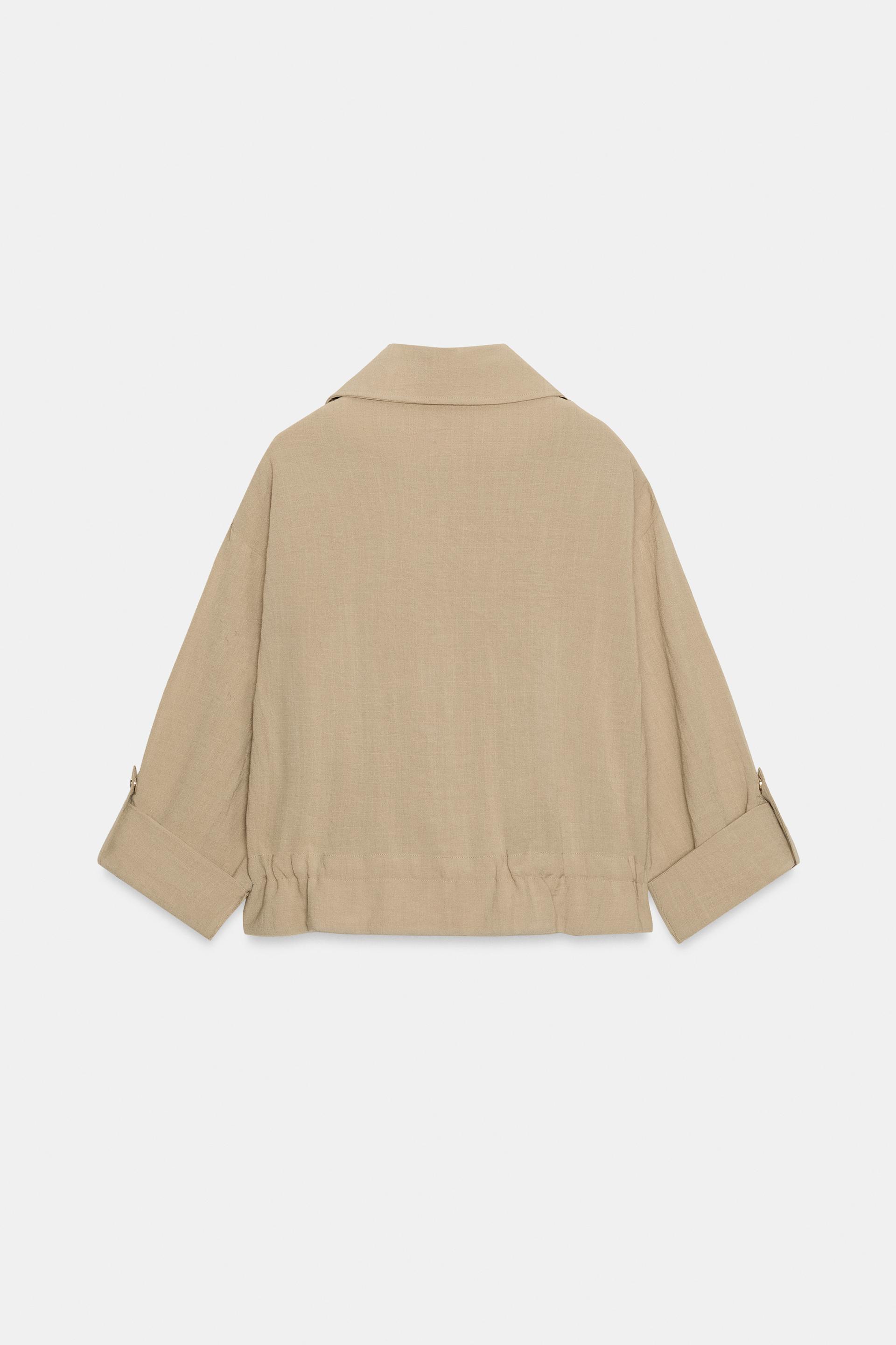 ZARA КОРОТКАЯ КУРТКА С ПОДВЕРНУТЫМИ РУКАВАМИ, ПЕСОЧНЫЙ