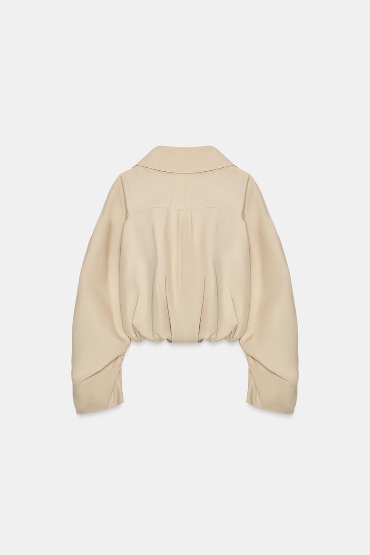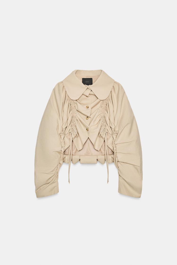 ZARA КОРОТКАЯ КУРТКА-ТРЕНЧ С РЮШАМИ, БЕЖЕВЫЙ