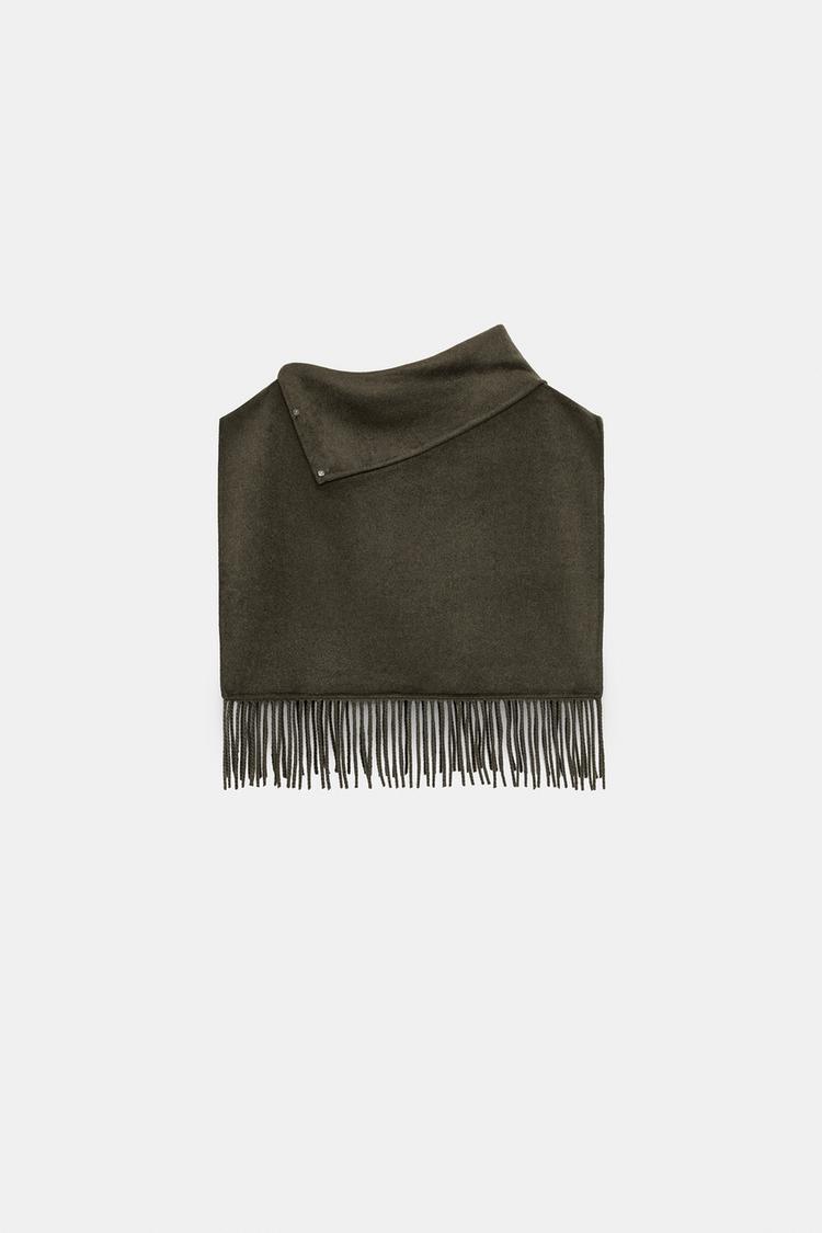 ZARA КОРОТКАЯ НАКИДКА ИЗ ШЕРСТИ С БАХРОМОЙ, ХАКИ