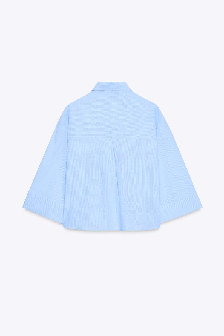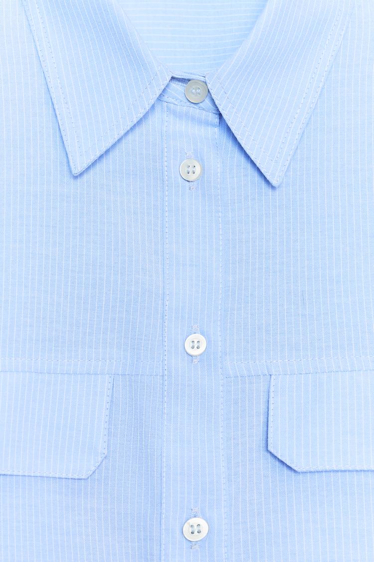 ZARA КОРОТКАЯ РУБАШКА В ПОЛОСКУ С НАКЛАДНЫМИ КЛАПАНАМИ, БЕЛЫЙ/НЕБЕСНО-ГОЛУБОЙ