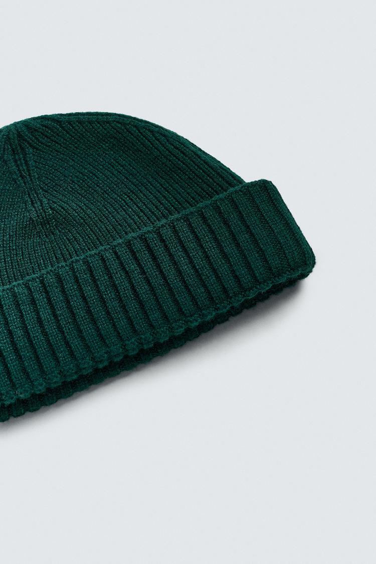ZARA КОРОТКАЯ ШАПКА БИНИ ИЗ СМЕСОВОЙ ШЕРСТИ, ЗЕЛЕНЫЙ