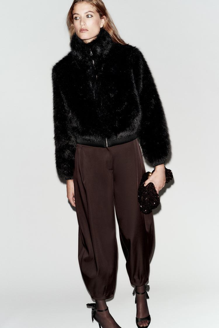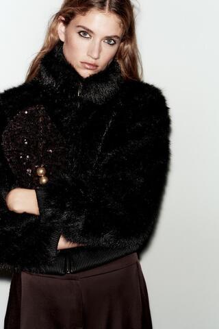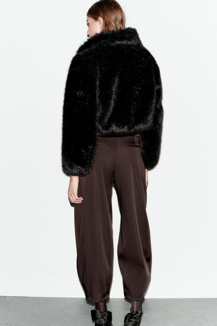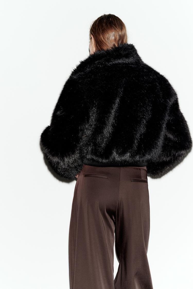ZARA КОРОТКАЯ ШУБА ИЗ ИСКУССТВЕННОГО МЕХА С ВОРОТНИКОМ-СТОЙКОЙ, ЧЕРНЫЙ