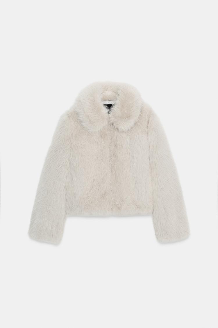 ZARA КОРОТКАЯ ШУБА З ИСКУССТВЕННОГО МЕХА НА МОЛНИИ, СЕРЫЙ