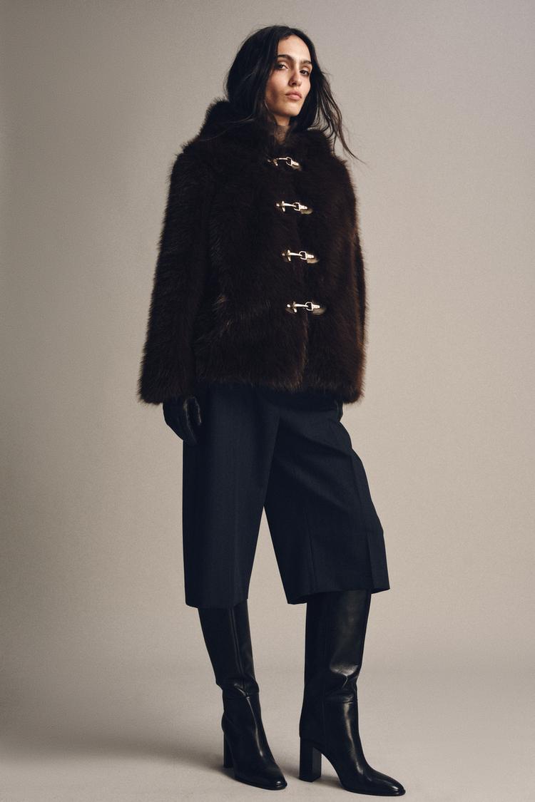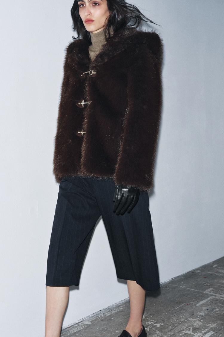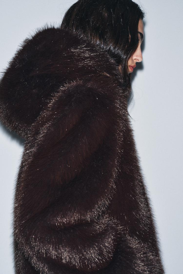 ZARA КОРОТКАЯ ШУБА ИЗ ИСКУССТВЕННОГО МЕХА — ZW COLLECTION, КОРИЧНЕВЫЙ/ЗЕЛЕНЫЙ