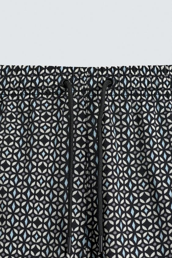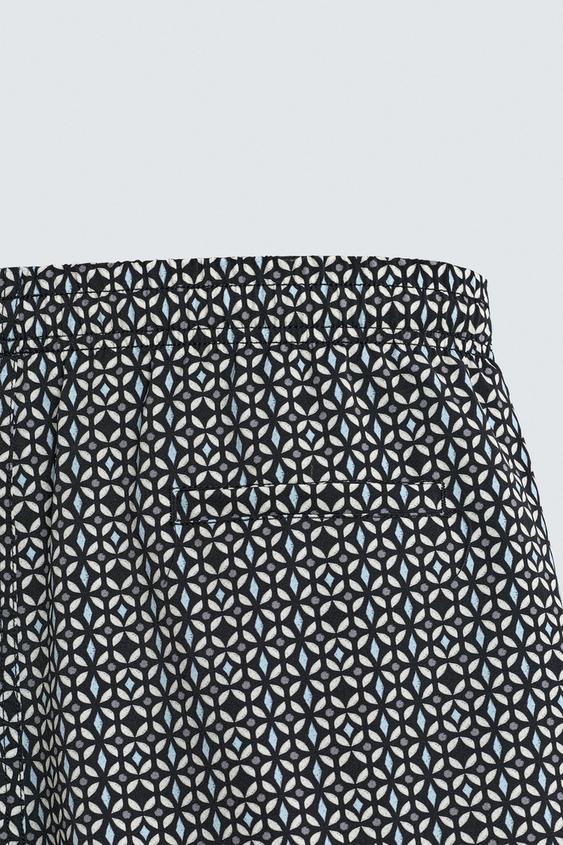 ZARA КОРОТКИЕ ПЛАВКИ С ГЕОМЕТРИЧЕСКИМ ПРИНТОМ, ЧЕРНЫЙ