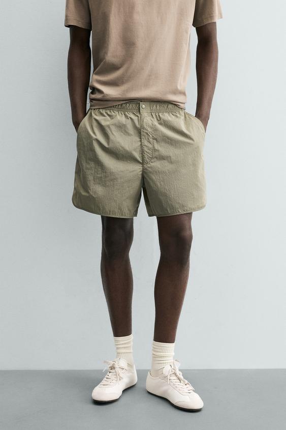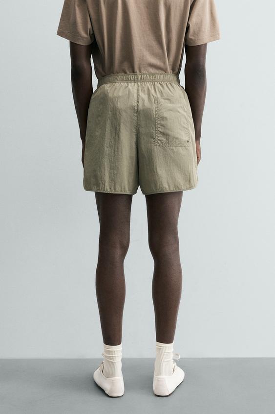 ZARA КОРОТКИЕ ШОРТЫ ИЗ ВЫСОКОТЕХНОЛОГИЧНОЙ ТКАНИ, ЗЕЛЕНЫЙ/СЕРЫЙ