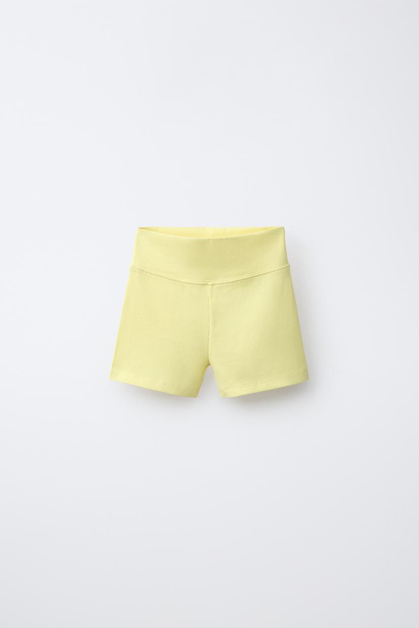 ZARA КОРОТКИЕ ВЕЛОСИПЕДКИ В РУБЧИК, ЖЕЛТЫЙ