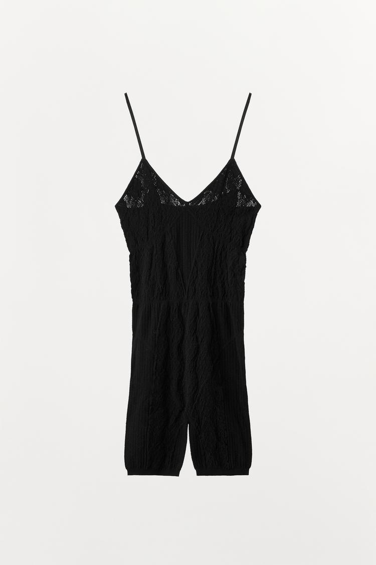 ZARA КОРОТКИЙ БЕСШОВНЫЙ КРУЖЕВНОЙ КОМБИНЕЗОН, ЧЕРНЫЙ