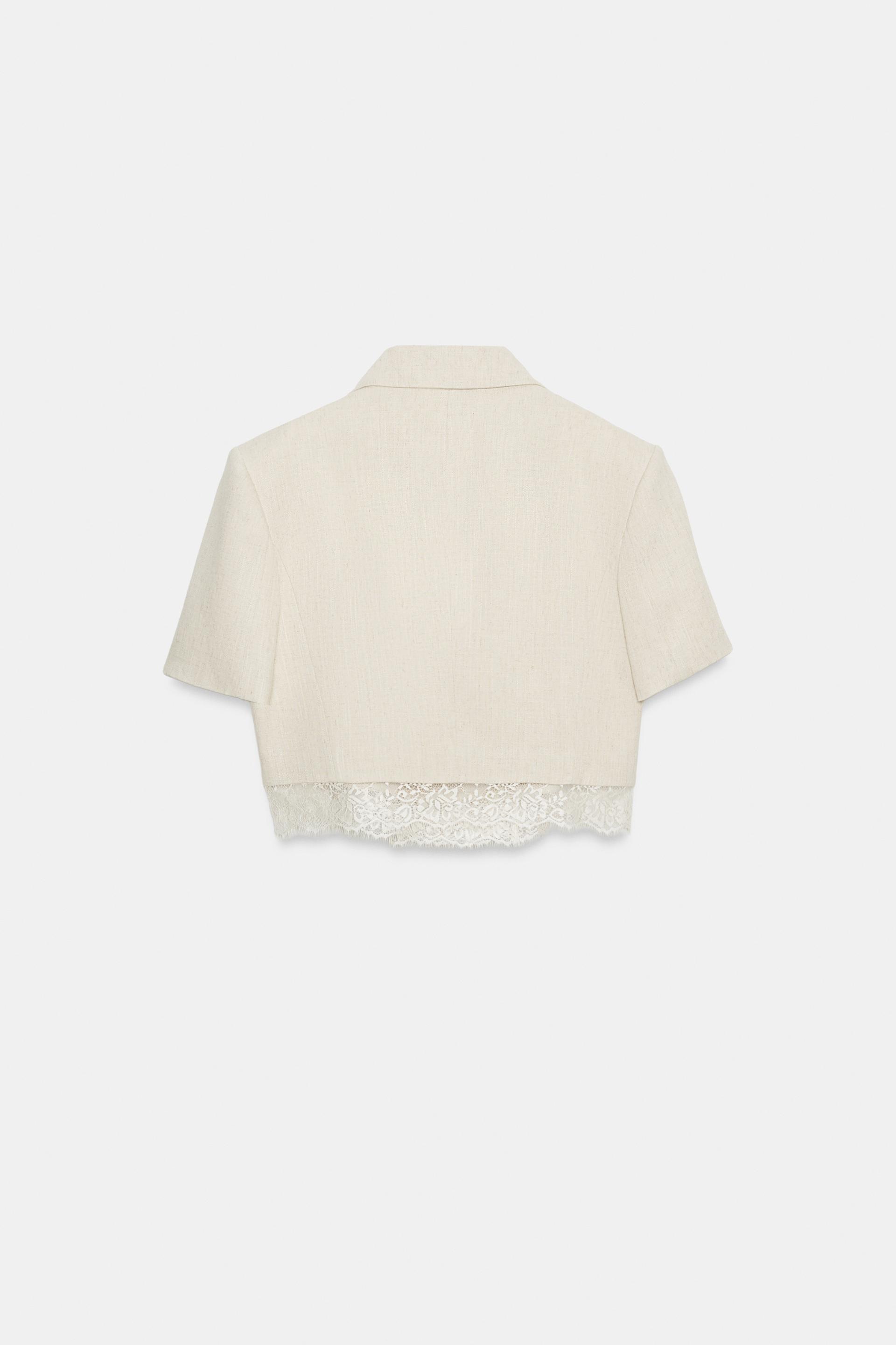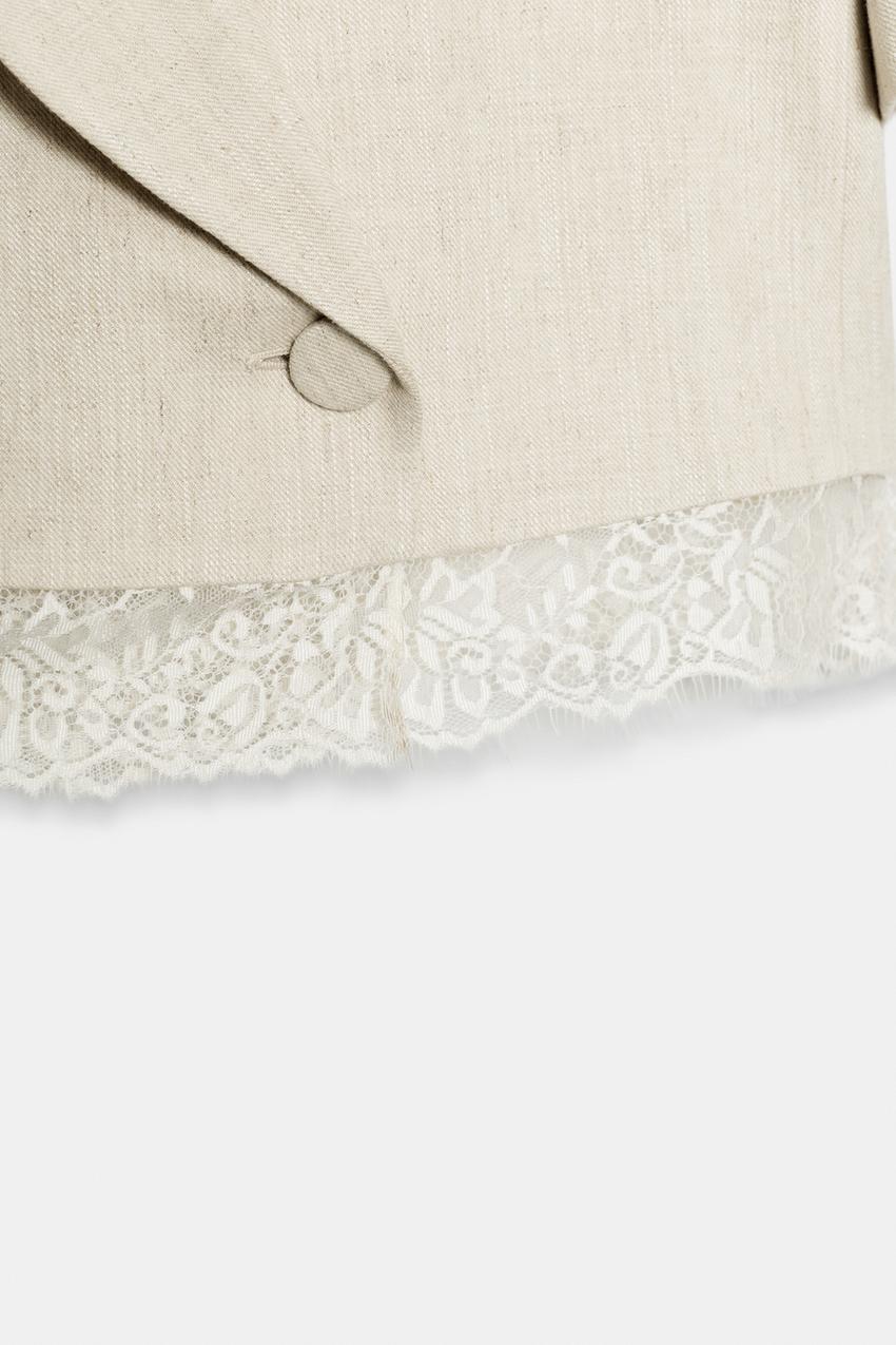 ZARA КОРОТКИЙ БЛЕЙЗЕР С КРУЖЕВОМ, СВЕТЛО-БЕЖЕВЫЙ