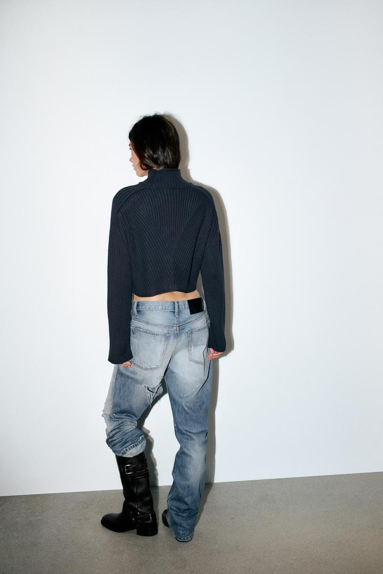 ZARA КОРОТКИЙ ДЖЕМПЕР В РУБЧИК, МОРСКОЙ СИНИЙ