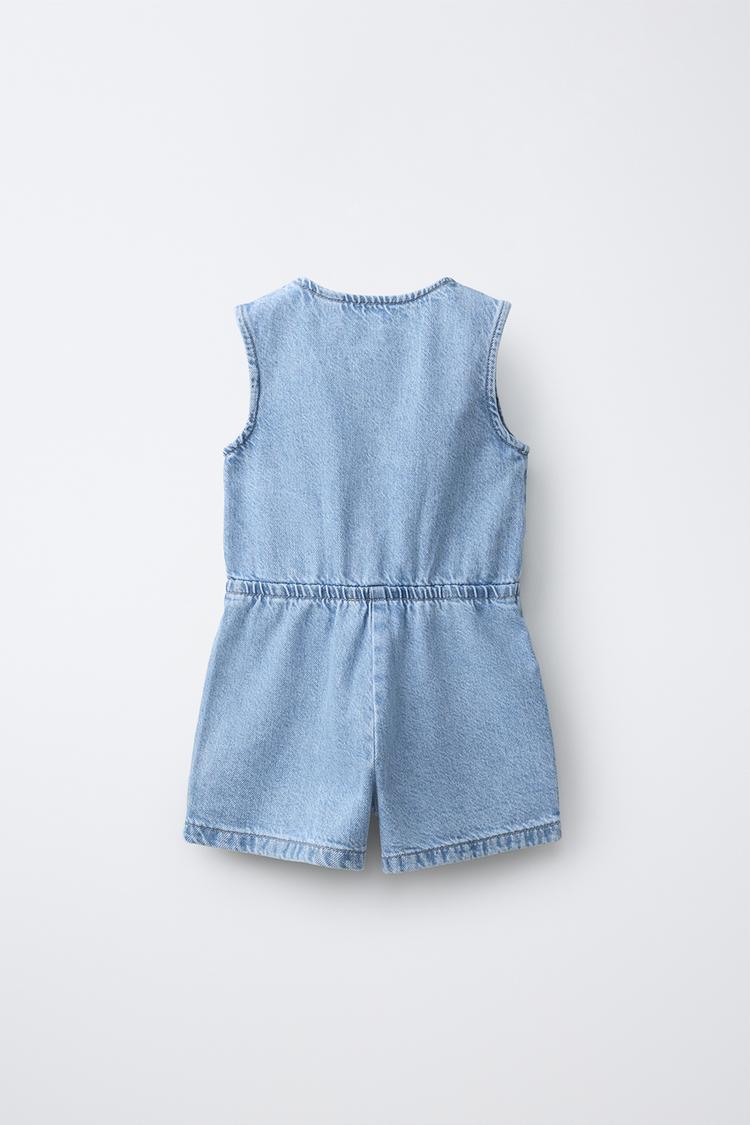 ZARA КОРОТКИЙ ДЖИНСОВЫЙ КОМБИНЕЗОН С БАНТИКАМИ, ГОЛУБОЙ