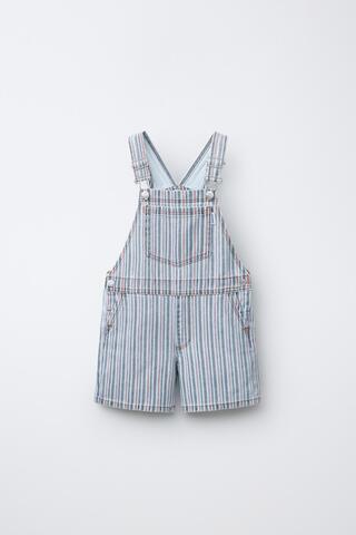 ZARA КОРОТКИЙ ДЖИНСОВЫЙ КОМБИНЕЗОН В ПОЛОСКУ, ПОЛОСКИ
