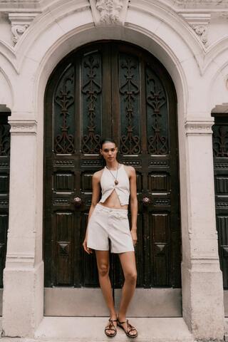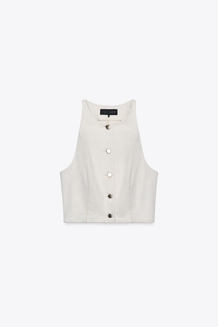 ZARA КОРОТКИЙ ДЖИНСОВЫЙ ЖИЛЕТ Z1975, ЭКРЮ