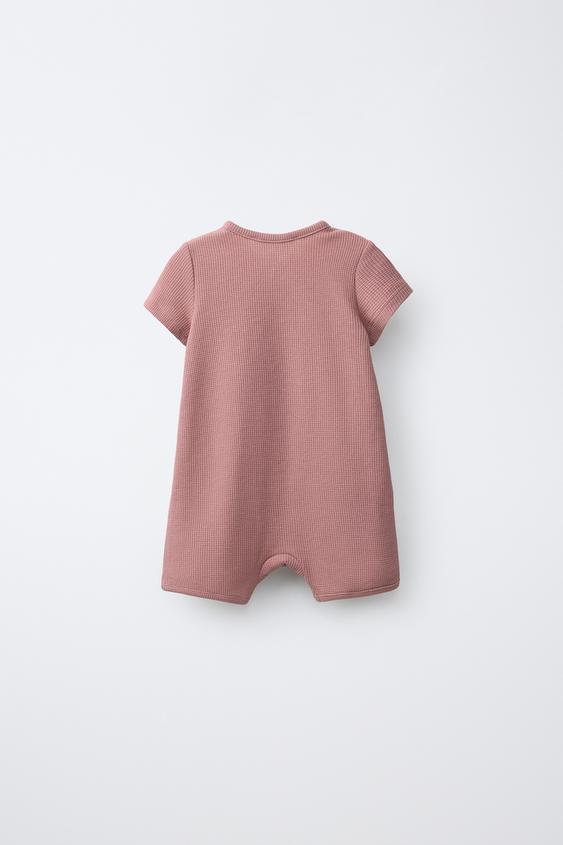 ZARA КОРОТКИЙ КОМБИНЕЗОН ИЗ РИФЛЕНОГО ТРИКОТАЖА, РОЗОВАТЫЙ