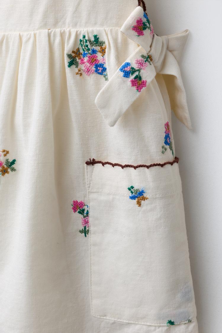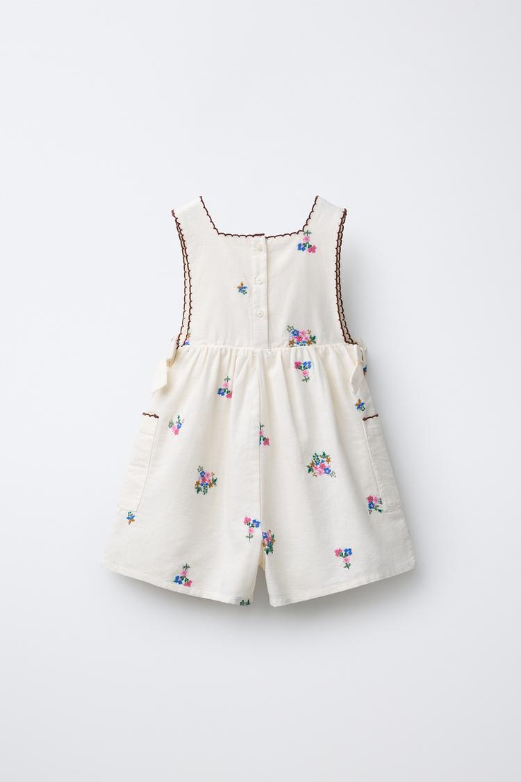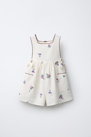 ZARA КОРОТКИЙ КОМБИНЕЗОН С ВЫШИВКОЙ, ЭКРЮ