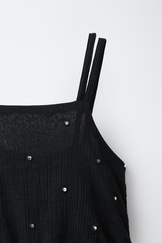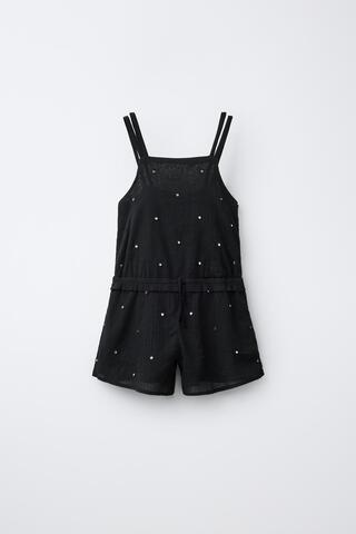 ZARA КОРОТКИЙ КОМБИНЕЗОН С ЗЕРКАЛЬНЫМ ДЕКОРОМ, ЧЕРНЫЙ