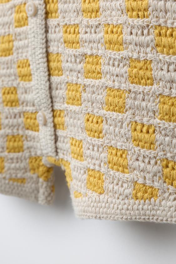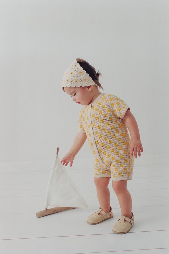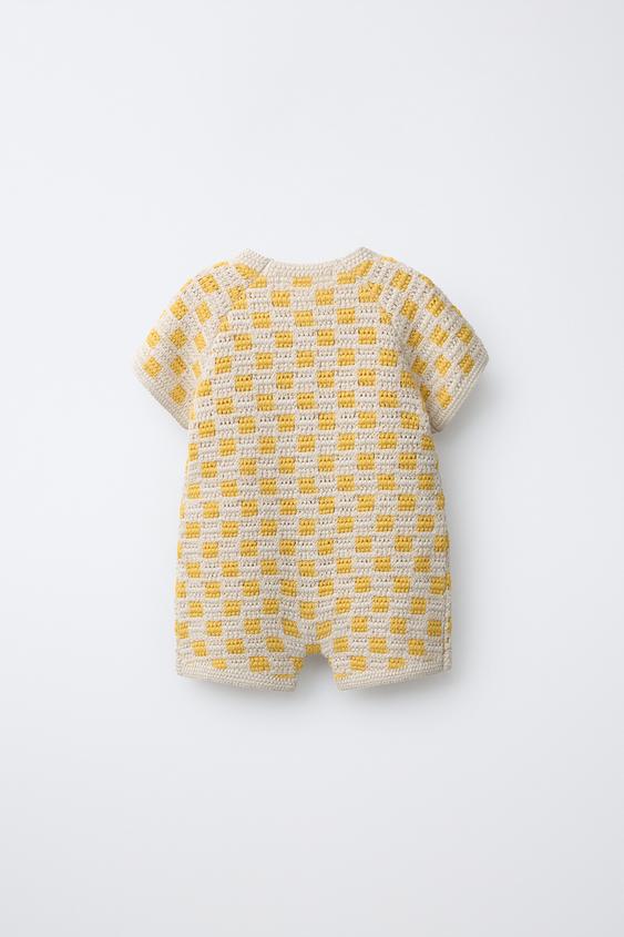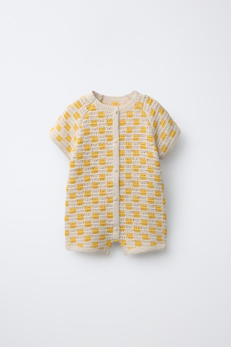 ZARA КОРОТКИЙ КОМБИНЕЗОН В КЛЕТКУ, ЭКРЮ/ЖЕЛТЫЙ