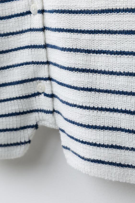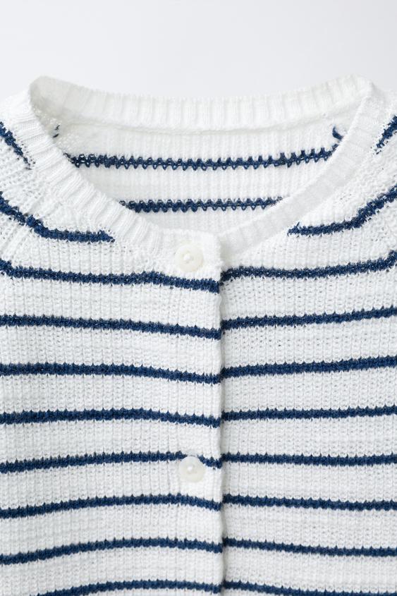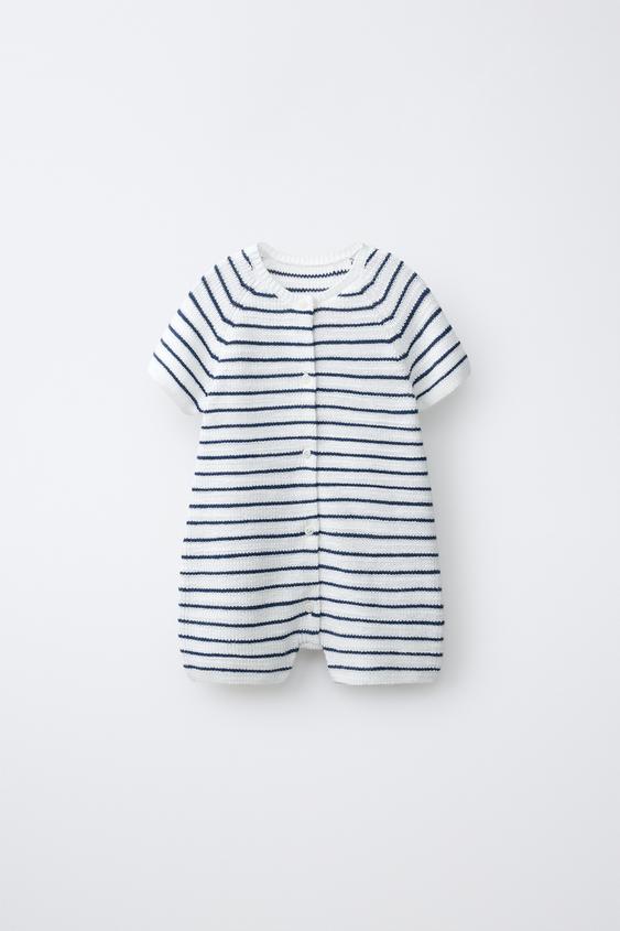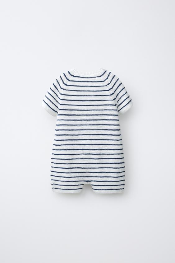 ZARA КОРОТКИЙ КОМБИНЕЗОН В ПОЛОСКУ, ЭКРЮ/СИНИЙ