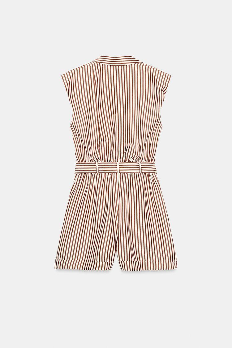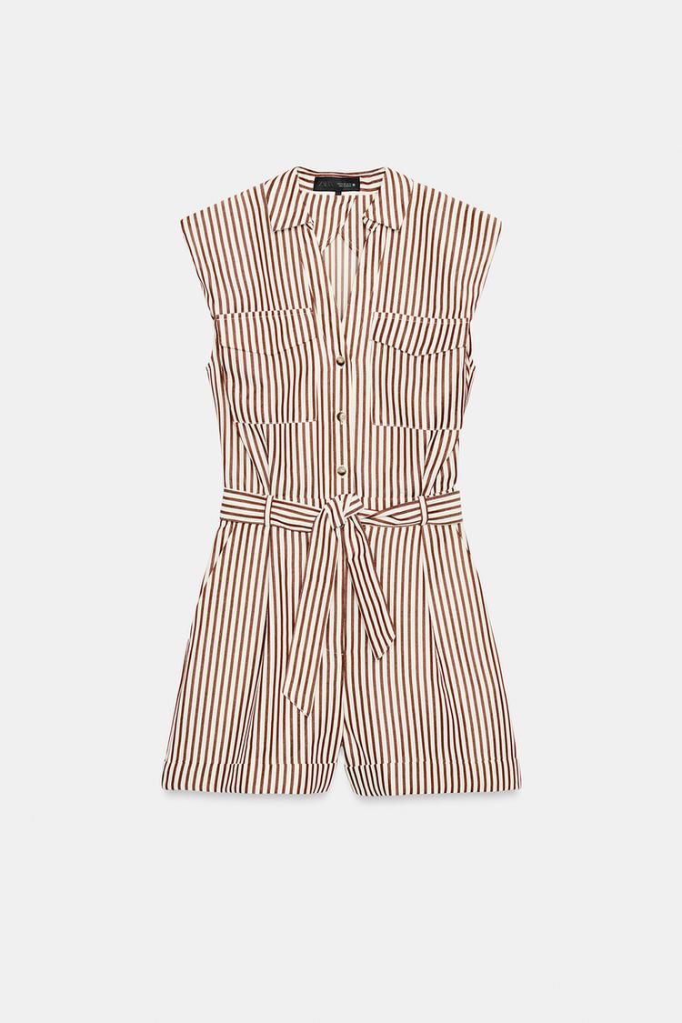 ZARA КОРОТКИЙ КОМБИНЕЗОН В ПОЛОСКУ С РЕМНЕМ, КОРИЧНЕВЫЙ