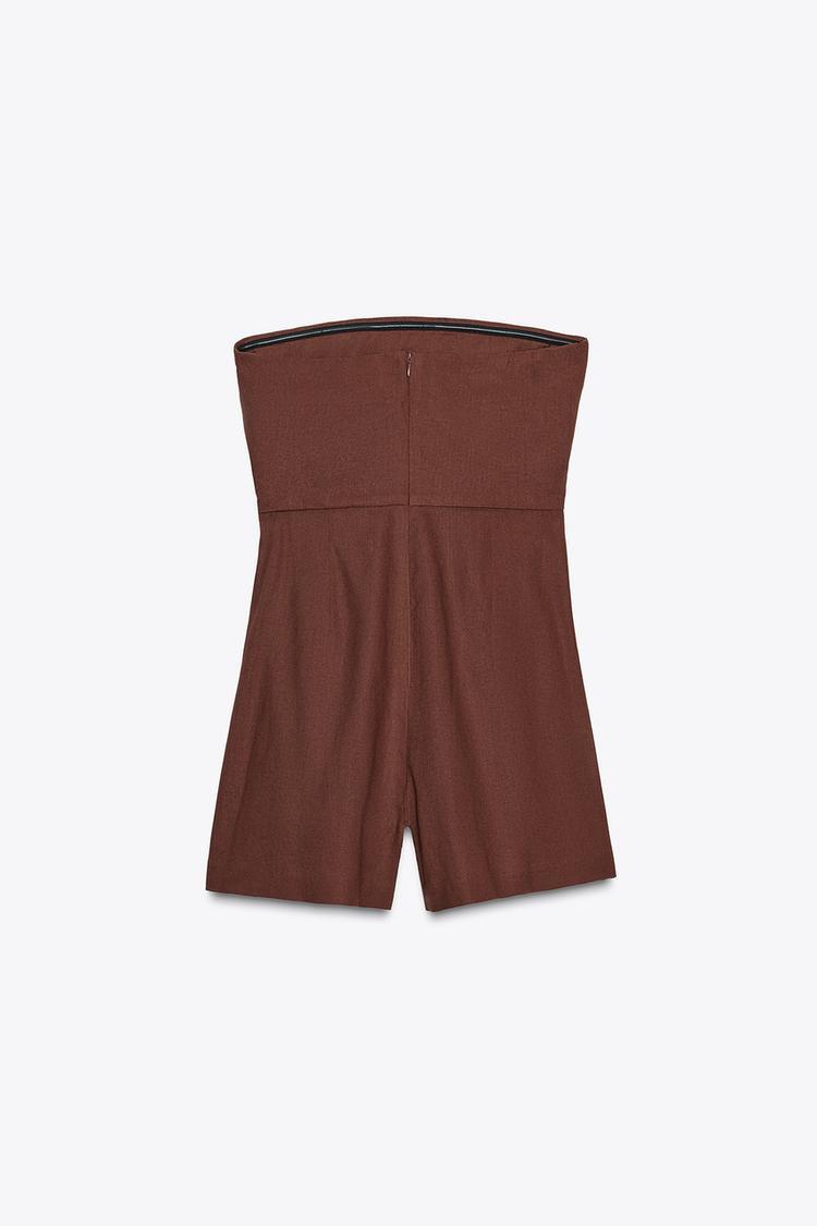 ZARA КОРОТКИЙ ЛЬНЯНОЙ КОМБИНЕЗОН, ТЕРРАКОТОВЫЙ