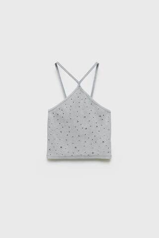 ZARA КОРОТКИЙ ТОП С ЗАКЛЕПКАМИ Z3D, ЦВЕТ ЛЬДА