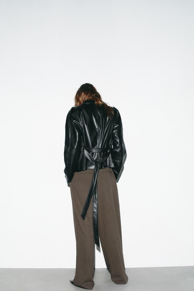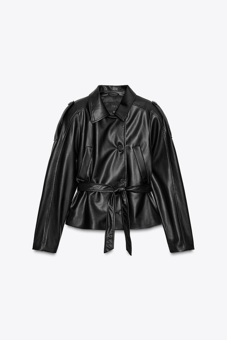 ZARA КОРОТКИЙ ТРЕНЧ ИЗ ИСКУССТВЕННОЙ КОЖИ, ЧЕРНЫЙ