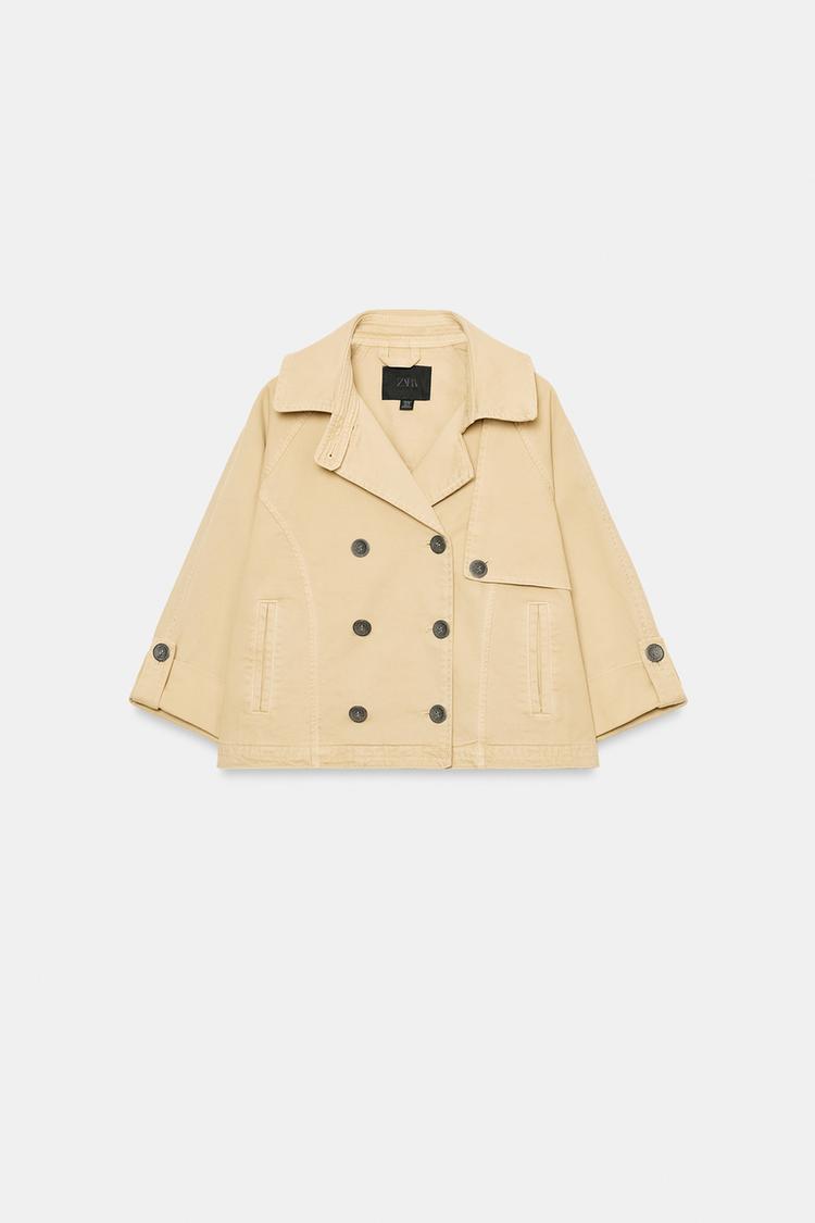 ZARA КОРОТКИЙ ТРЕНЧ С ЭФФЕКТОМ ПОТЕРТОСТИ, РЫЖЕВАТО-КОРИЧНЕВЫЙ