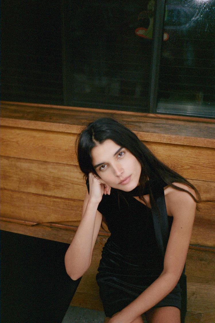 ZARA КОРОТКОЕ БАРХАТНОЕ ПЛАТЬЕ С ШАРФОМ, ЧЕРНЫЙ